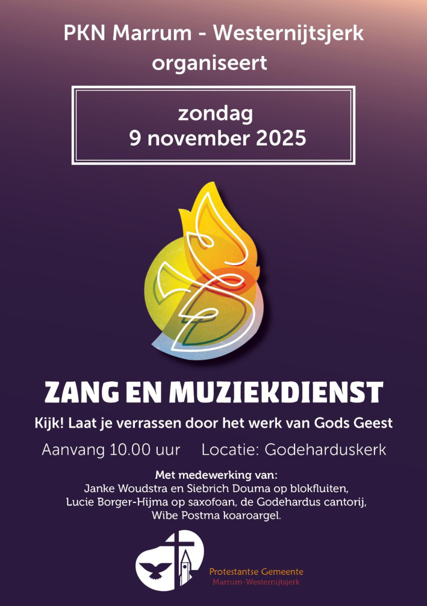 Op zondagmorgen en bij andere vieringen staan de deuren van de kerk voor u open. De diensten zijn ook te volgen via kerkomroep en YouTube (PKN Marrum). In de zomermaanden juli en augustus zijn er geen YouTube-uitzendingen.